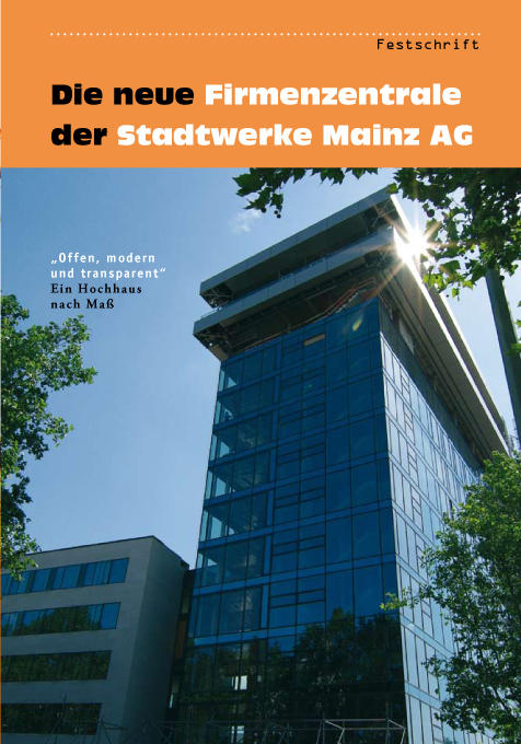 Die komplette Sanierung der Firmenzentrale der Mainzer Stadtwerke wurde filmisch und fotografisch festgehalten. Titelfoto und 12 weitere Bilder der Festschrift stammen von eyemovies.